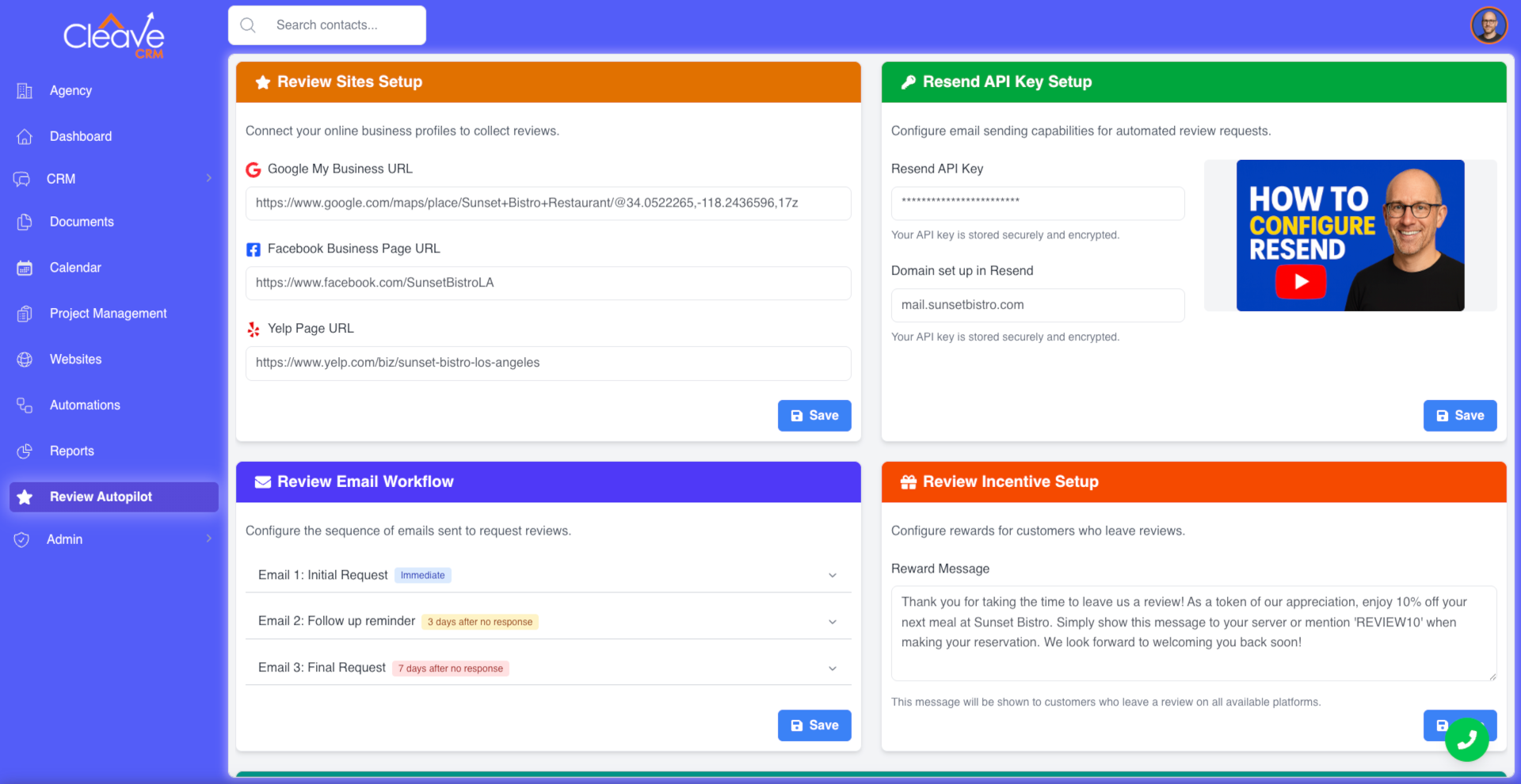 Are you tired of CRMs that take months to set up, need consultants, and hide key tools behind paid upgrades? Cleave CRM gives you all the core sales and marketing features preconfigured out of the box—no paywalls, no bloat, in a fast easy to use platform.